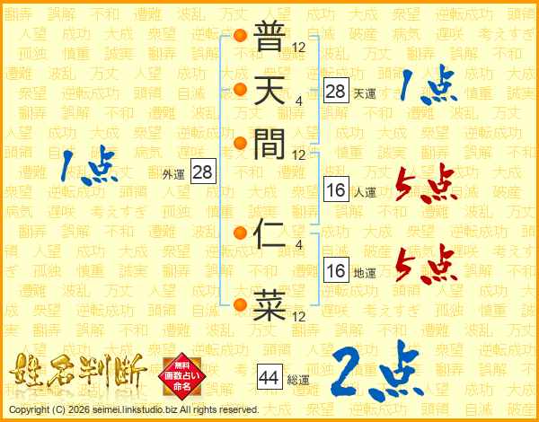 普天間仁菜さんの総運は44画の2点!