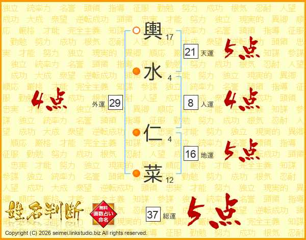 輿水仁菜さんの総運は37画の5点!