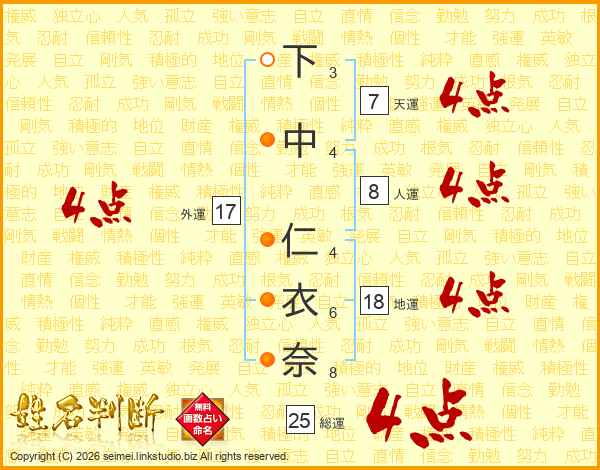 下中仁衣奈さんの天運は7画の4点!