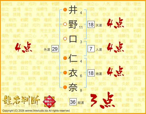 井野口仁衣奈さんの天運は18画の4点!