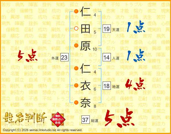 仁田原仁衣奈さんの総運は37画の5点!