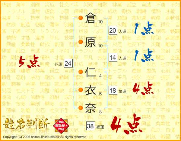 倉原仁衣奈さんの総運は38画の4点!