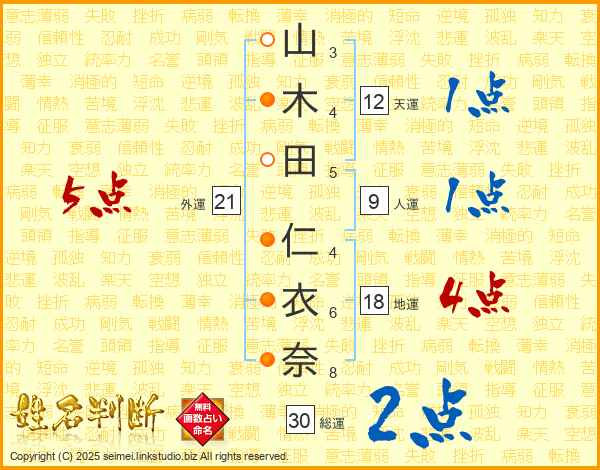 山木田仁衣奈さんの総運は30画の2点!