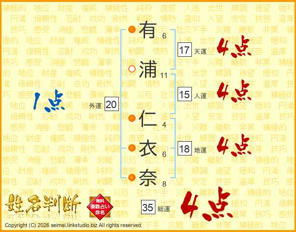 有浦仁衣奈さんの総運は35画の4点!