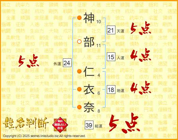 神部仁衣奈さんの総運は39画の5点!