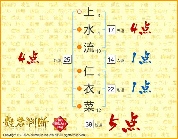上水流仁衣菜さんの総運は39画の5点!