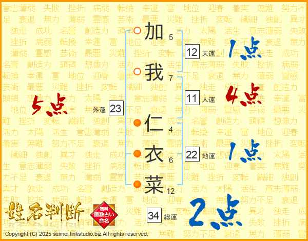 加我仁衣菜さんの人運は11画の4点!