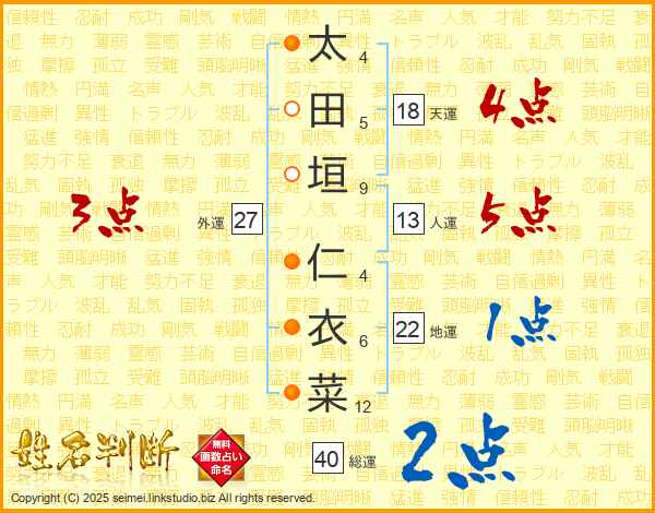 太田垣仁衣菜さんの天運は18画の4点!