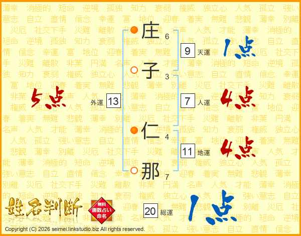 庄子仁那さんの総運は20画の1点!