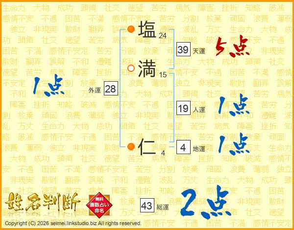 塩(24画)満(15画) 仁(4画)