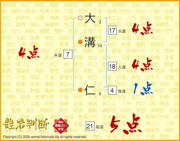 大溝仁さんの天運は17画の4点!