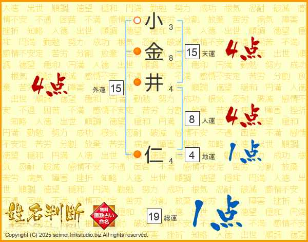 小金井仁さんの総運は19画の1点!