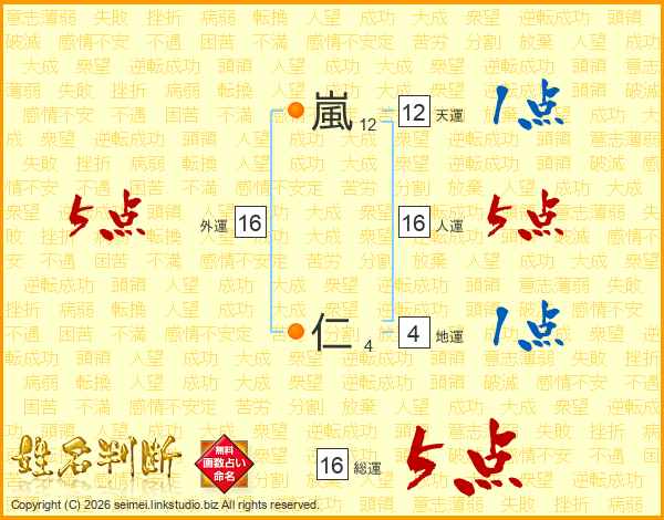 嵐仁さんの人運は16画の5点!