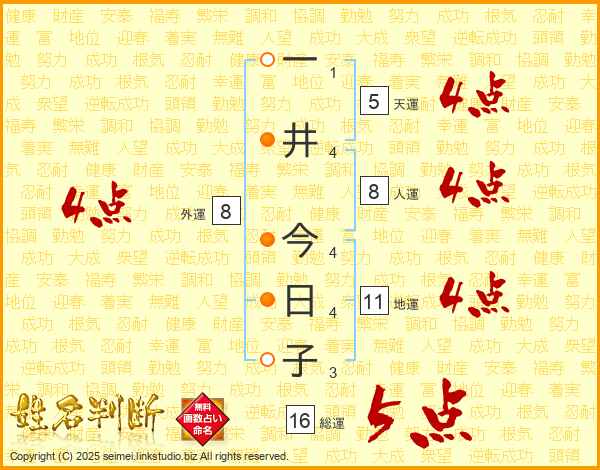 一(1画)井(4画) 今(4画)日(4画)子(3画)