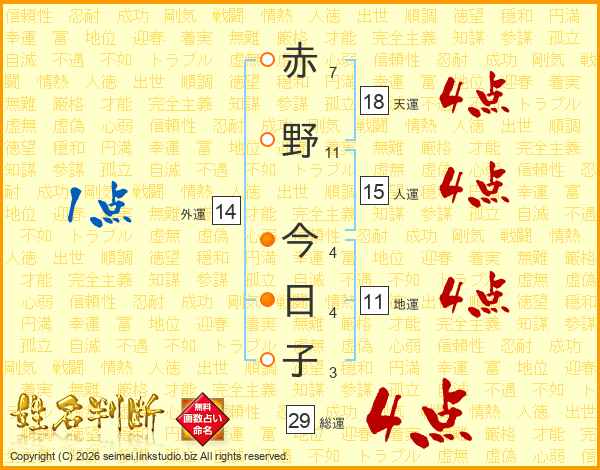 赤野今日子さんの総運は29画の4点!