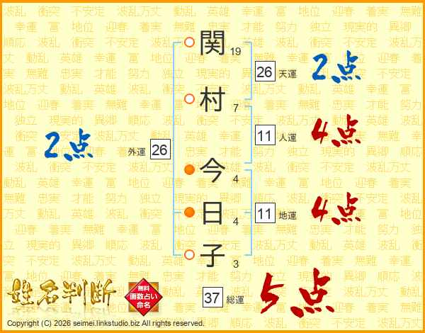 関村今日子さんの総運は37画の5点!