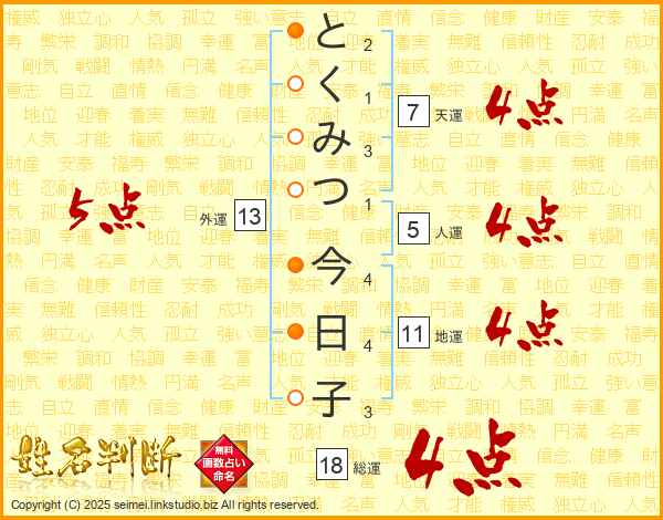 とくみつ今日子さんの天運は7画の4点!