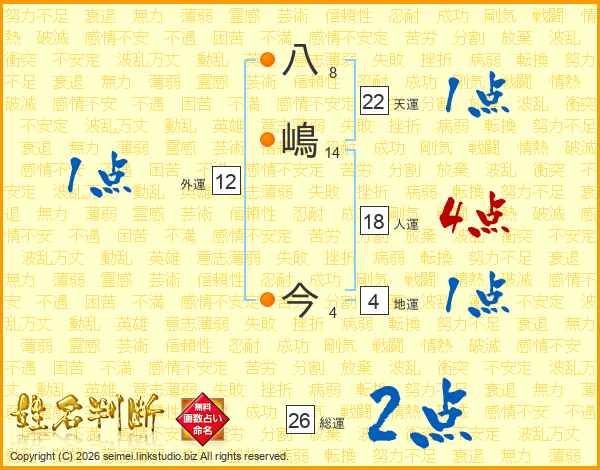 八嶋今さんの総運は26画の2点