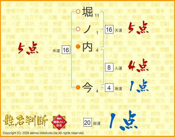 堀(11画)ノ(1画)内(4画) 今(4画)