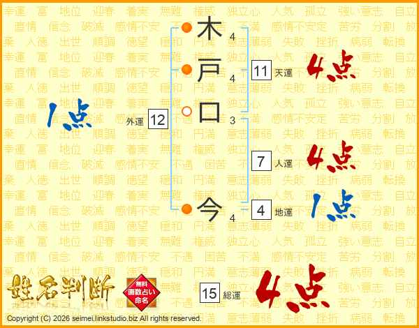 木戸口今さんの総運は15画の4点!