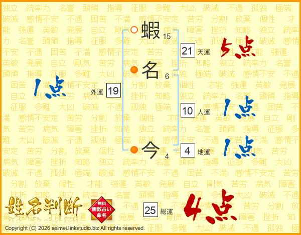 蝦名今さんの天運は21画の5点!