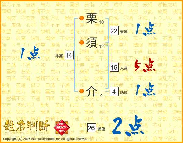 栗須介さんの人運は16画の5点!
