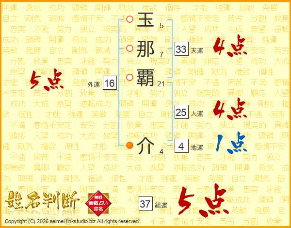 玉那覇介さんの総運は37画の5点!