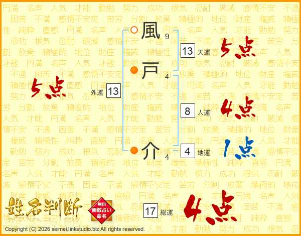 風戸介さんの総運は17画の4点!