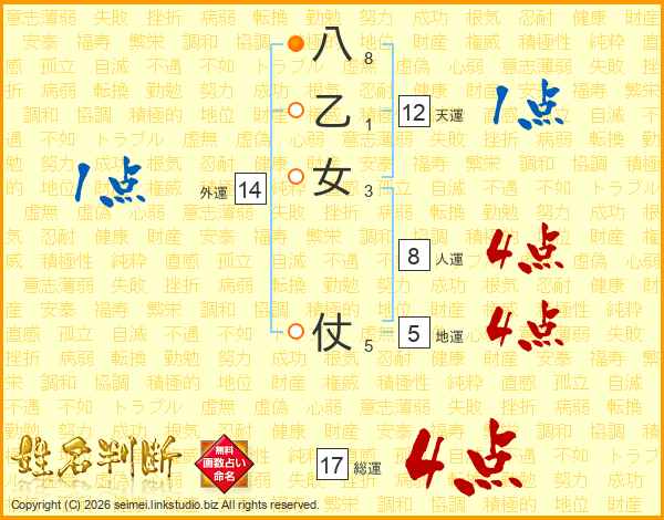 八乙女仗さんの総運は17画の4点!