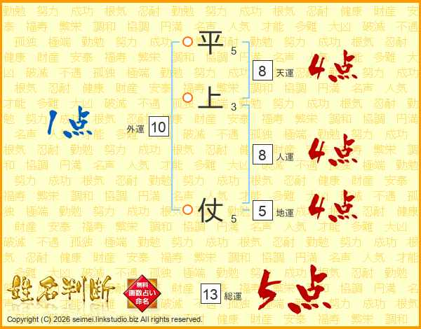 平上仗さんの総運は13画の5点!