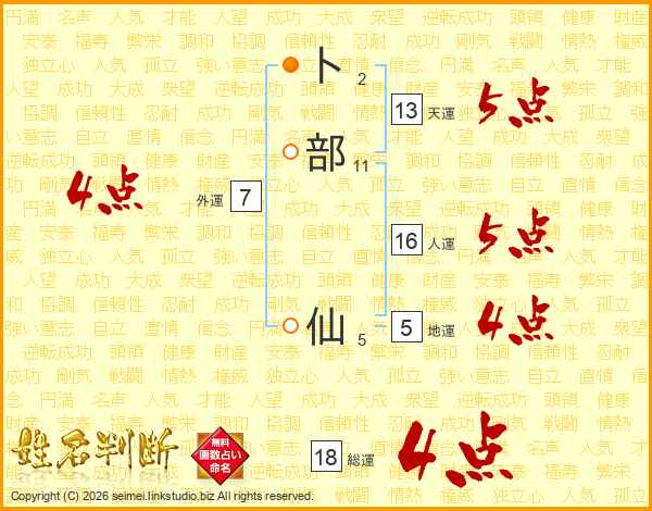 卜部仙さんの総運は18画の4点!