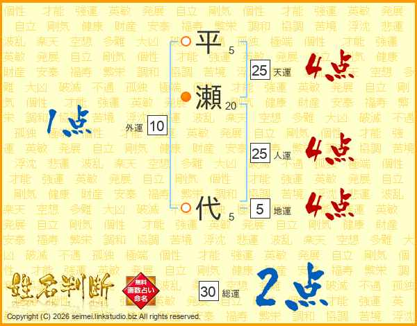 平瀬代さんの総運は30画の2点!