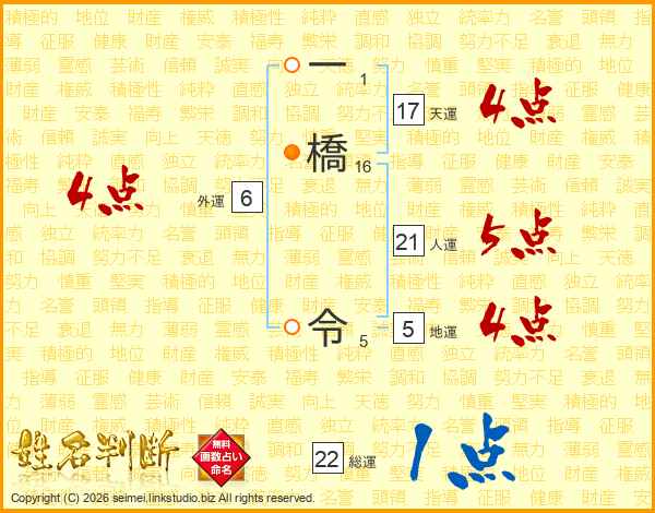 一橋令さんの総運は22画の1点!