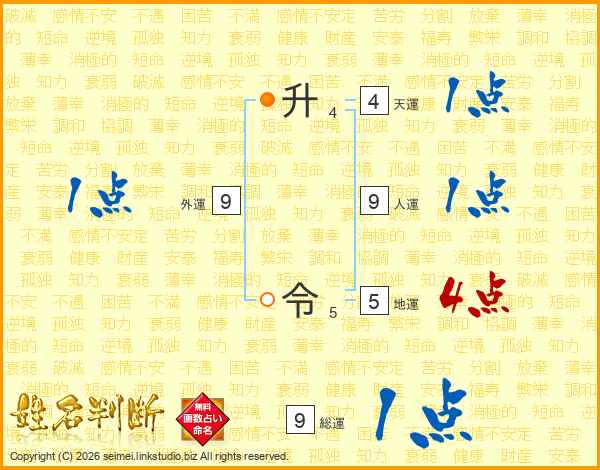 升令さんの総運は9画の1点!