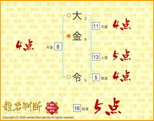 大金令さんの総運は16画の5点!
