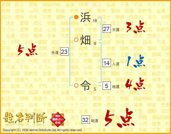 浜畑令さんの総運は32画の5点!