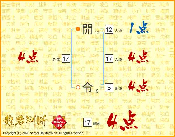 開令さんの総運は17画の4点!