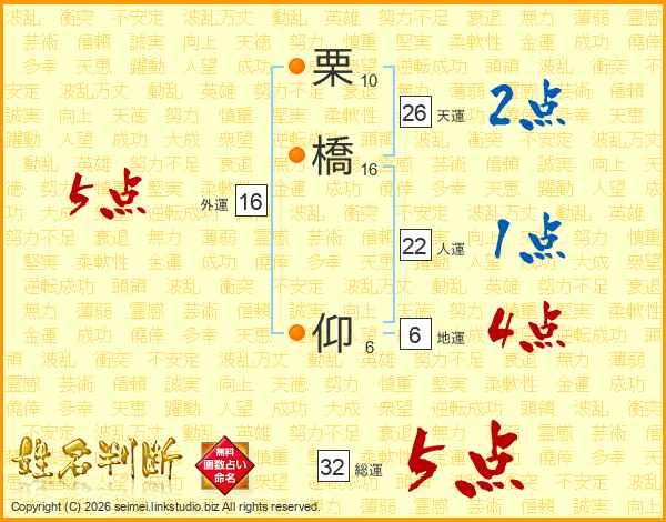 栗橋仰さんの総運は32画の5点!