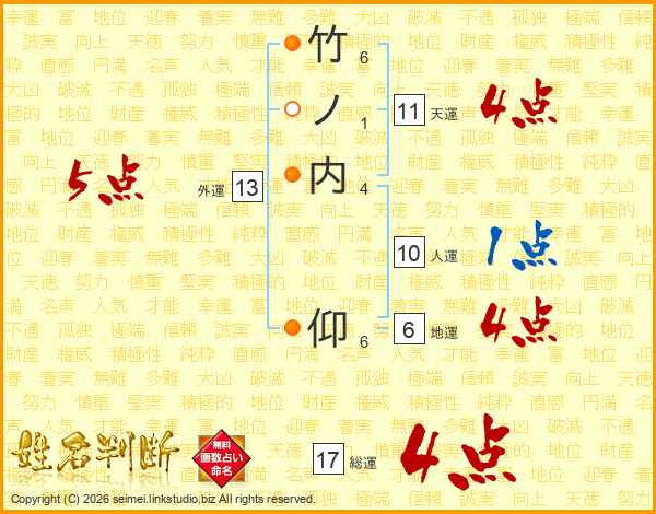 竹ノ内仰さんの総運は17画の4点!