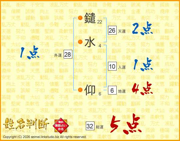 鑓水仰さんの総運は32画の5点!