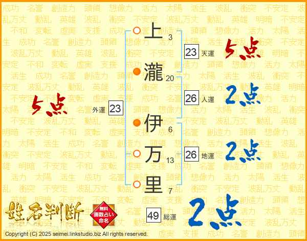 上瀧伊万里さんの天運は23画の5点!
