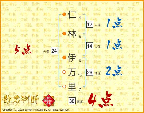 仁林伊万里さんの総運は38画の4点!