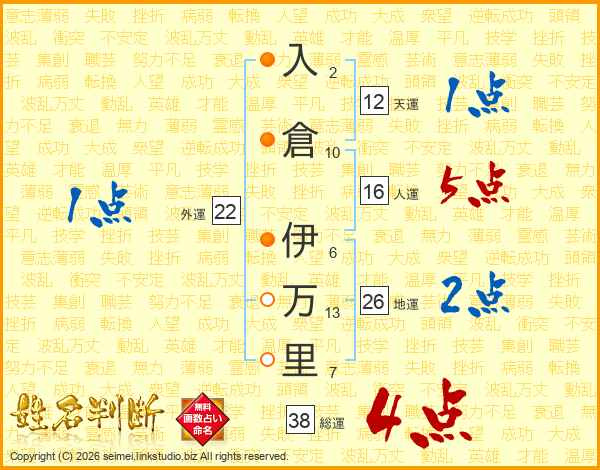 入倉伊万里さんの総運は38画の4点!