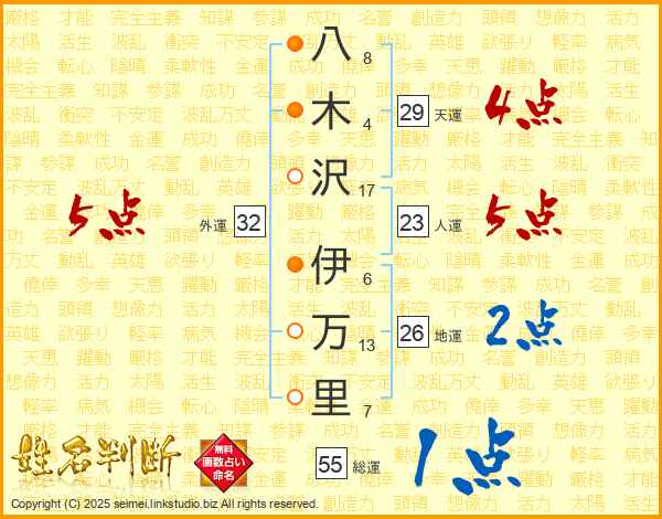 八木沢伊万里さんの天運は29画の4点!