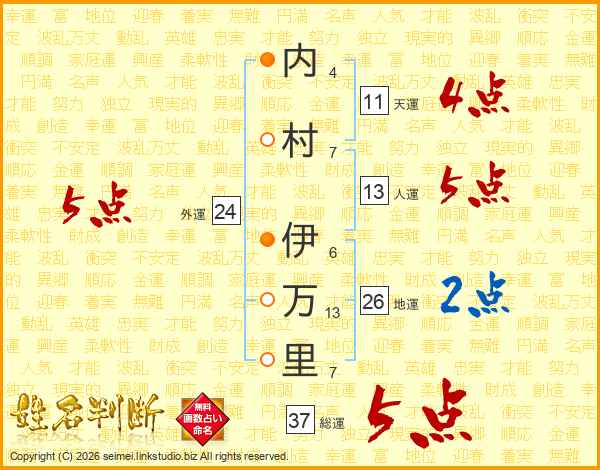内村伊万里さんの総運は37画の5点!