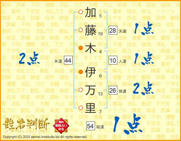 加藤木伊万里さんの外運は44画の2点!