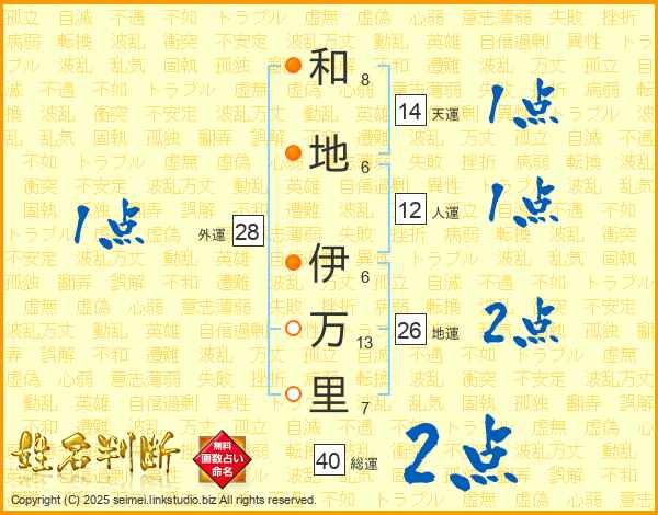 和地伊万里さんの地運は26画の2点!