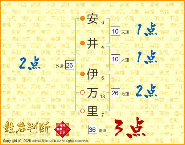 安井伊万里さんの総運は36画の3点!