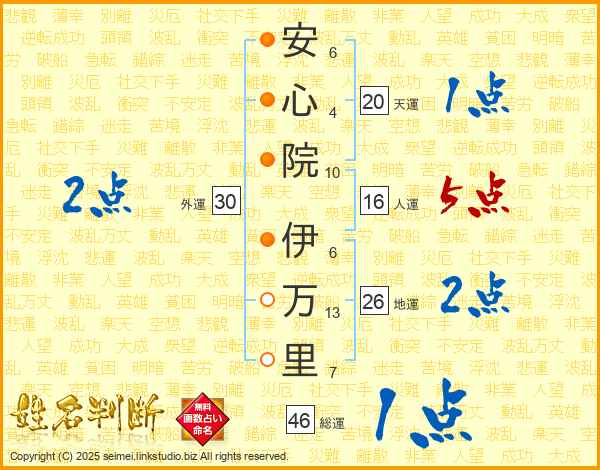 安心院伊万里さんの総運は46画の1点!