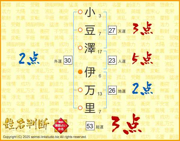 小豆澤伊万里さんの総運は53画の3点!
